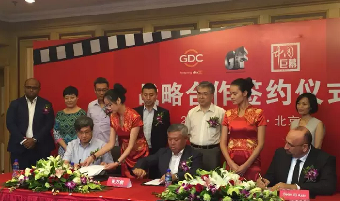 2015年8月16日,中影數(shù)字巨幕(北京)有限公司與環(huán)球數(shù)碼創(chuàng)意科技有限公司(GDC)及阿聯(lián)酋海灣影業(yè)公司在京簽訂了戰(zhàn)略合作意向書。三方計劃未來一年內在海灣國家,包括阿聯(lián)酋、巴林、阿曼、科威特等國家合作部署至少5套中國巨幕放映系統(tǒng),為當?shù)氐碾娪坝^眾帶去卓越的巨幕效果和非凡的音響體驗,并且未來還將進一步在這一區(qū)域擴大中國巨幕技術系統(tǒng)的市場推廣力度。這是中國與海灣地區(qū)第一次簽訂如此大規(guī)模的電影相關技術合作協(xié)議,對兩地的電影市場發(fā)展和技術進步有重大意義。